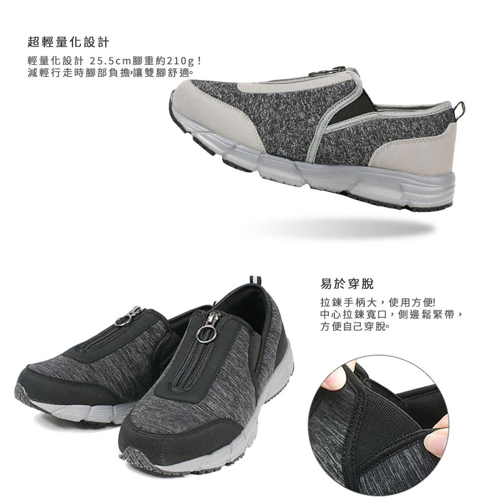 日本Anata Omoi 灰色 拉鍊足力寬楦健走鞋 免鞋帶 男女適用