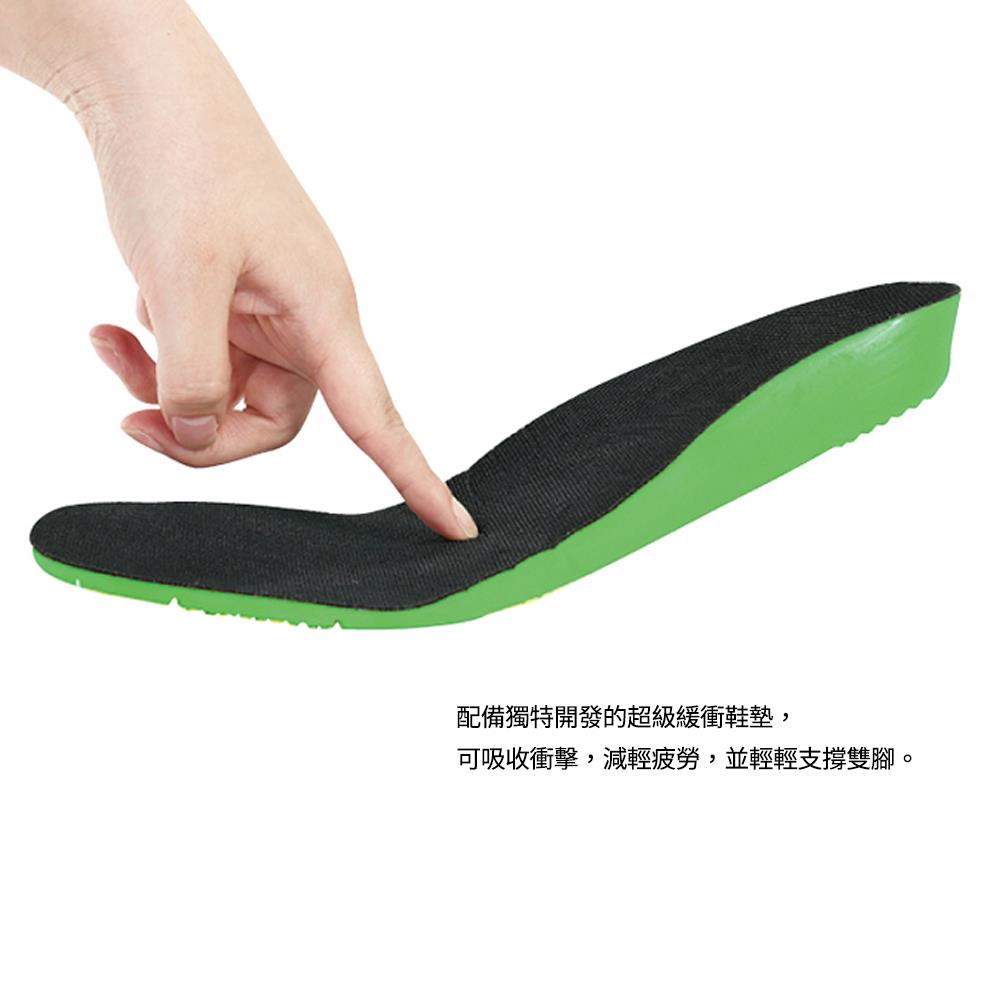 配備獨特開發的「超級緩衝」鞋墊,可吸收衝擊、減輕疲勞,並輕輕支撐雙腳。