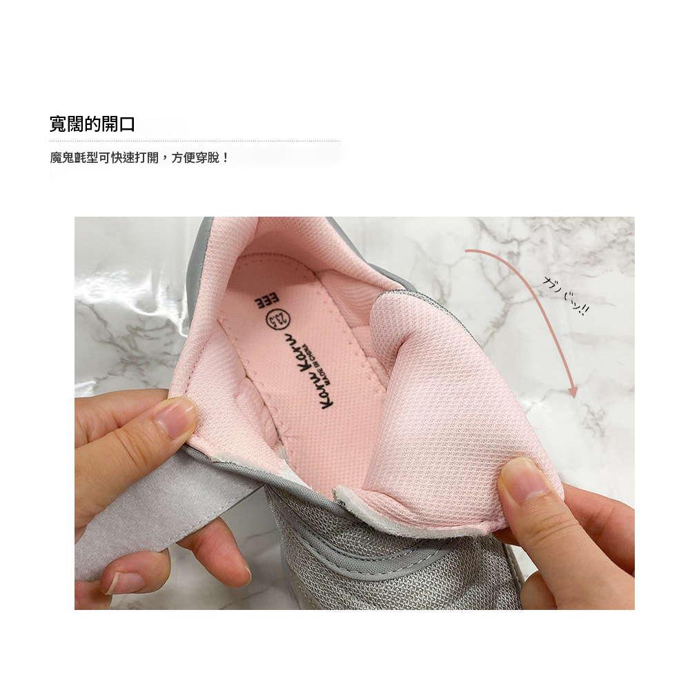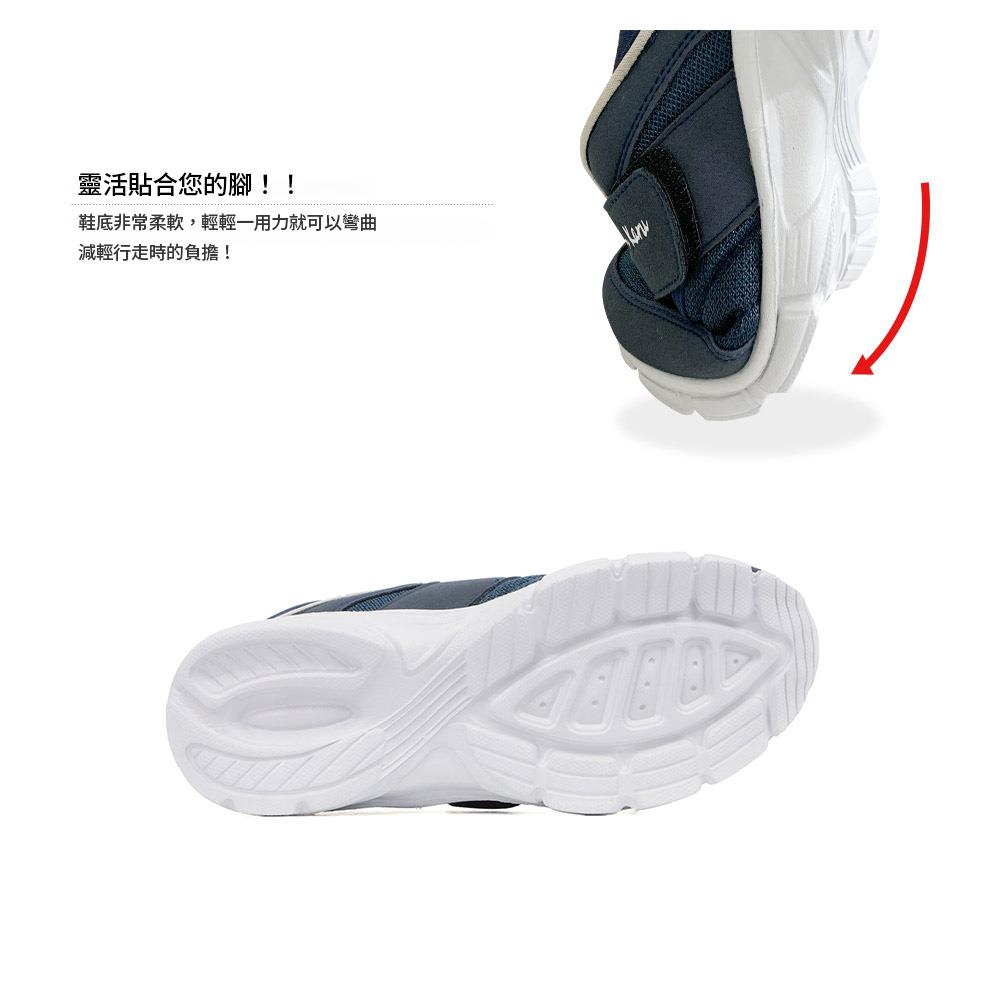 - 鞋面採用通風性極佳的網布材質,質地柔軟,對腳部友善。