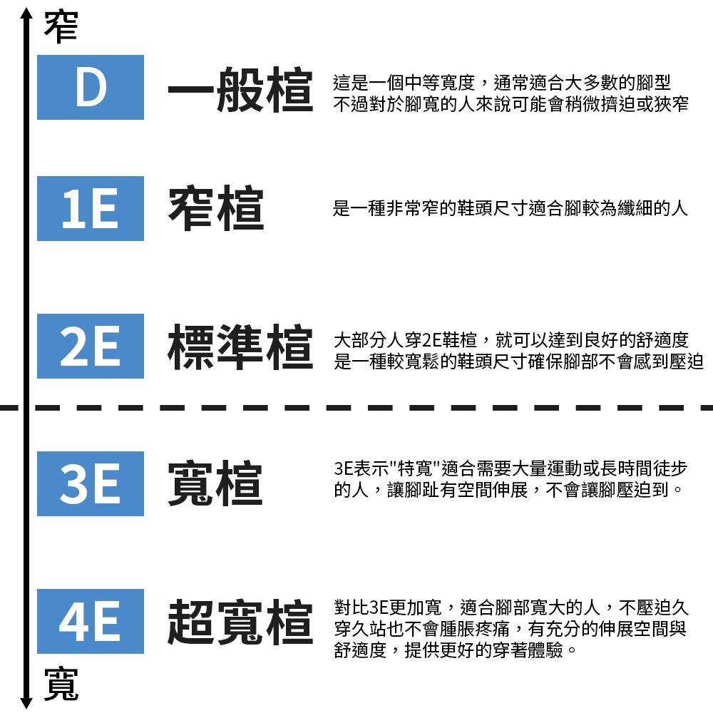 - 超輕量且3E寬度設計,減輕腳部負擔。