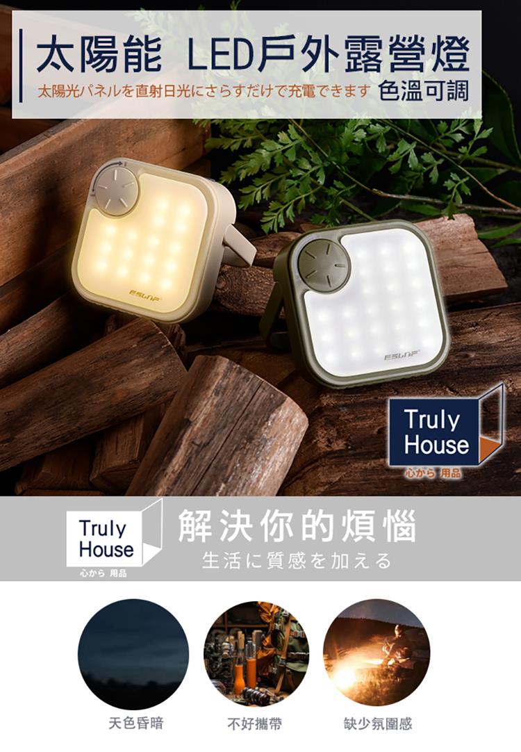 【Truly House】太陽能充電式LED露營燈 TYPE-C充電/帳篷吊燈 戶外掛燈 三色溫照明露營燈 手提燈(兩色任選)