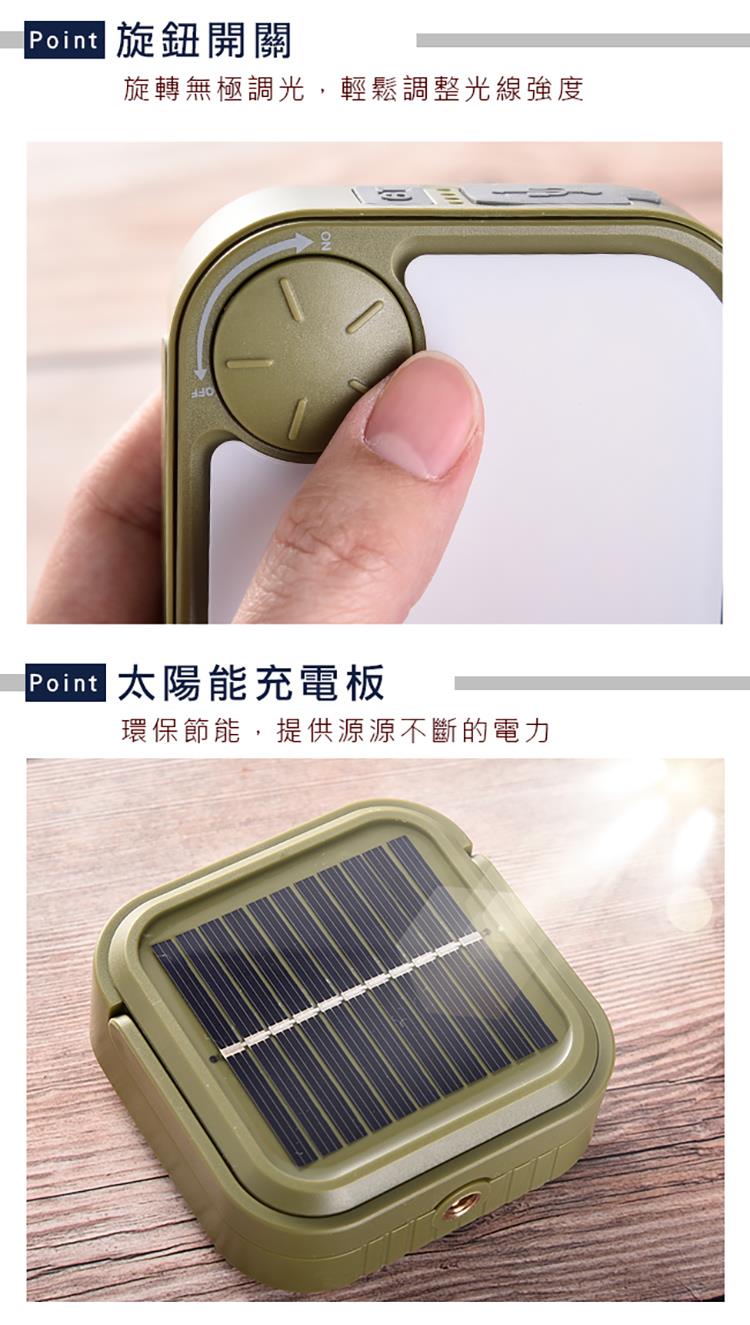 特殊太陽能充電設計,無極調光旋鈕設計,續航時間4-20小時
