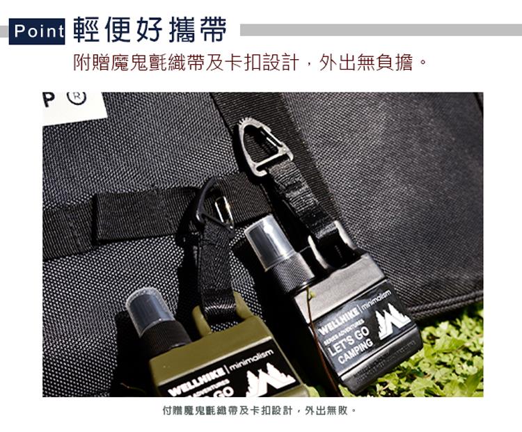 附贈魔鬼氈織帶及卡扣設計,細膩無水柱,大面積噴霧