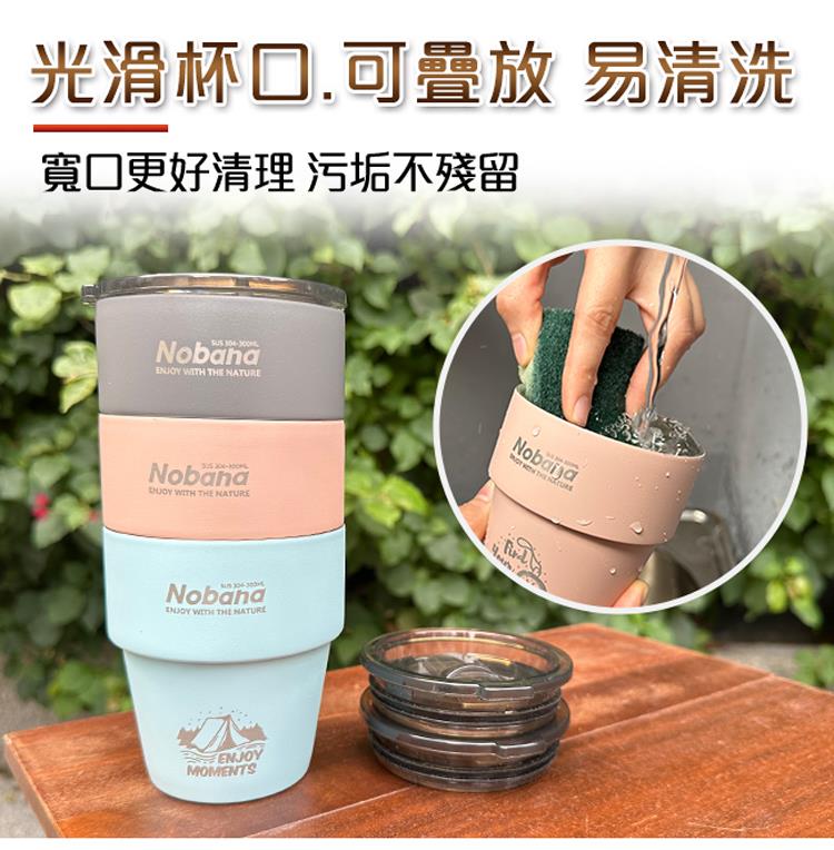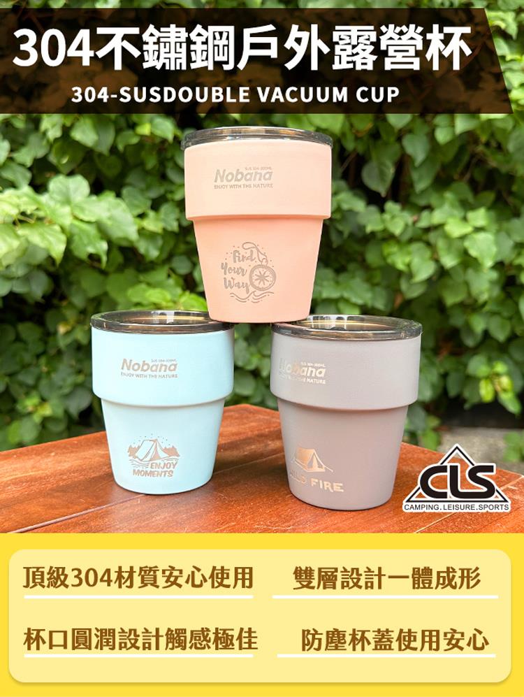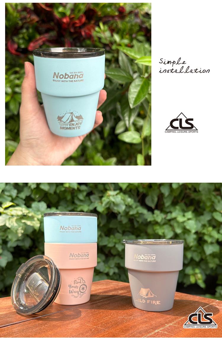 【韓國CLS】304不鏽鋼雙層杯 贈杯蓋/露營杯/套杯/野餐杯/不鏽鋼杯(超值三入組)(三色各一)