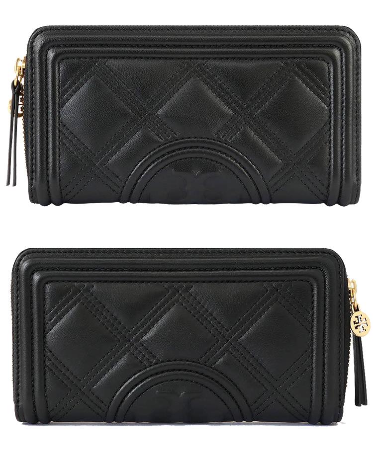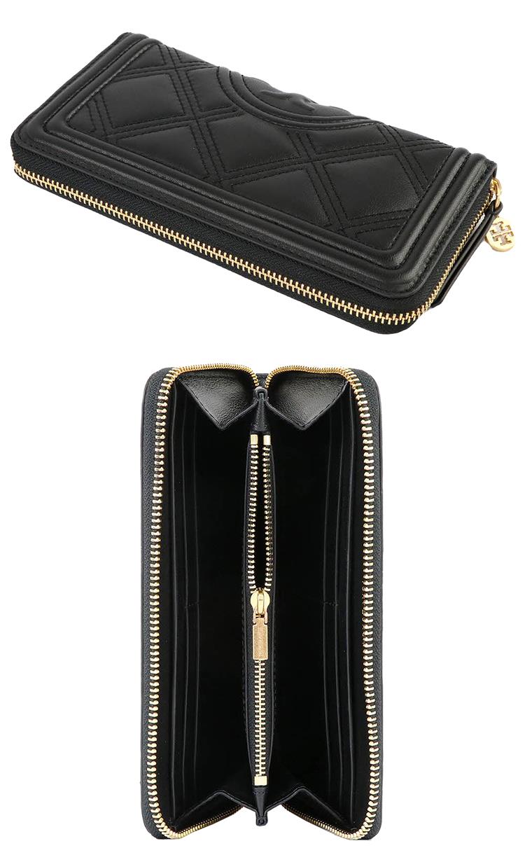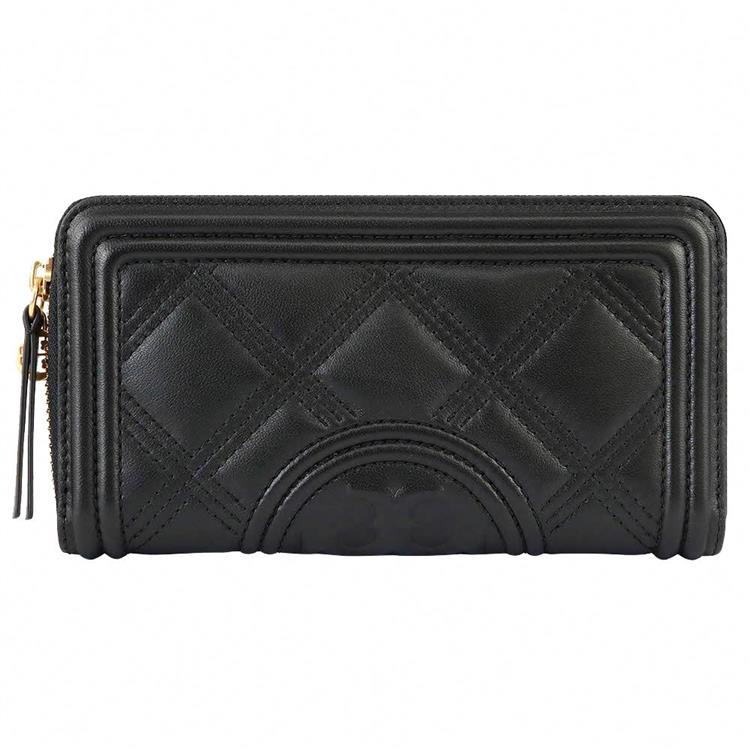Tory burch 菱格紋皮革拉鍊長夾-黑