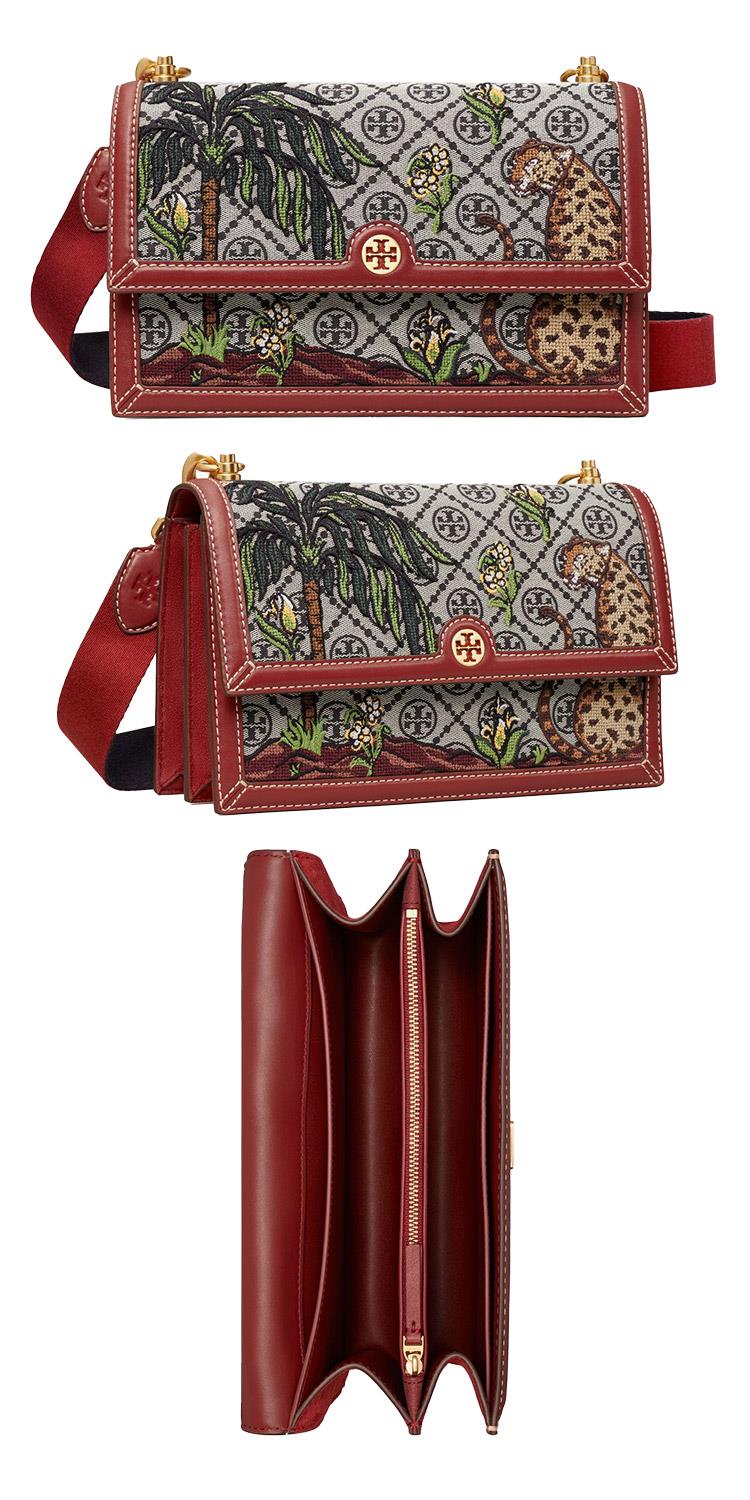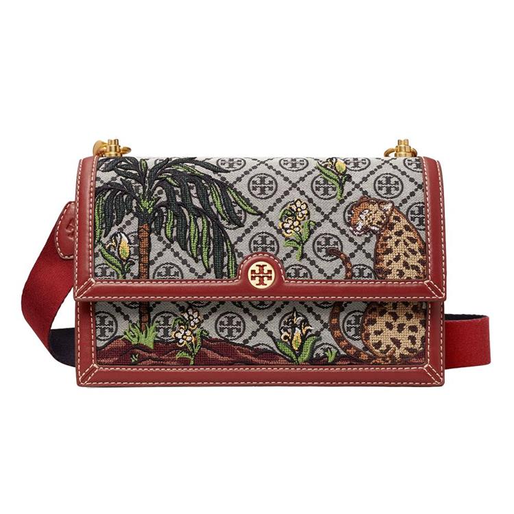 Tory burch 印花拼接皮革刺繡斜背包-老虎