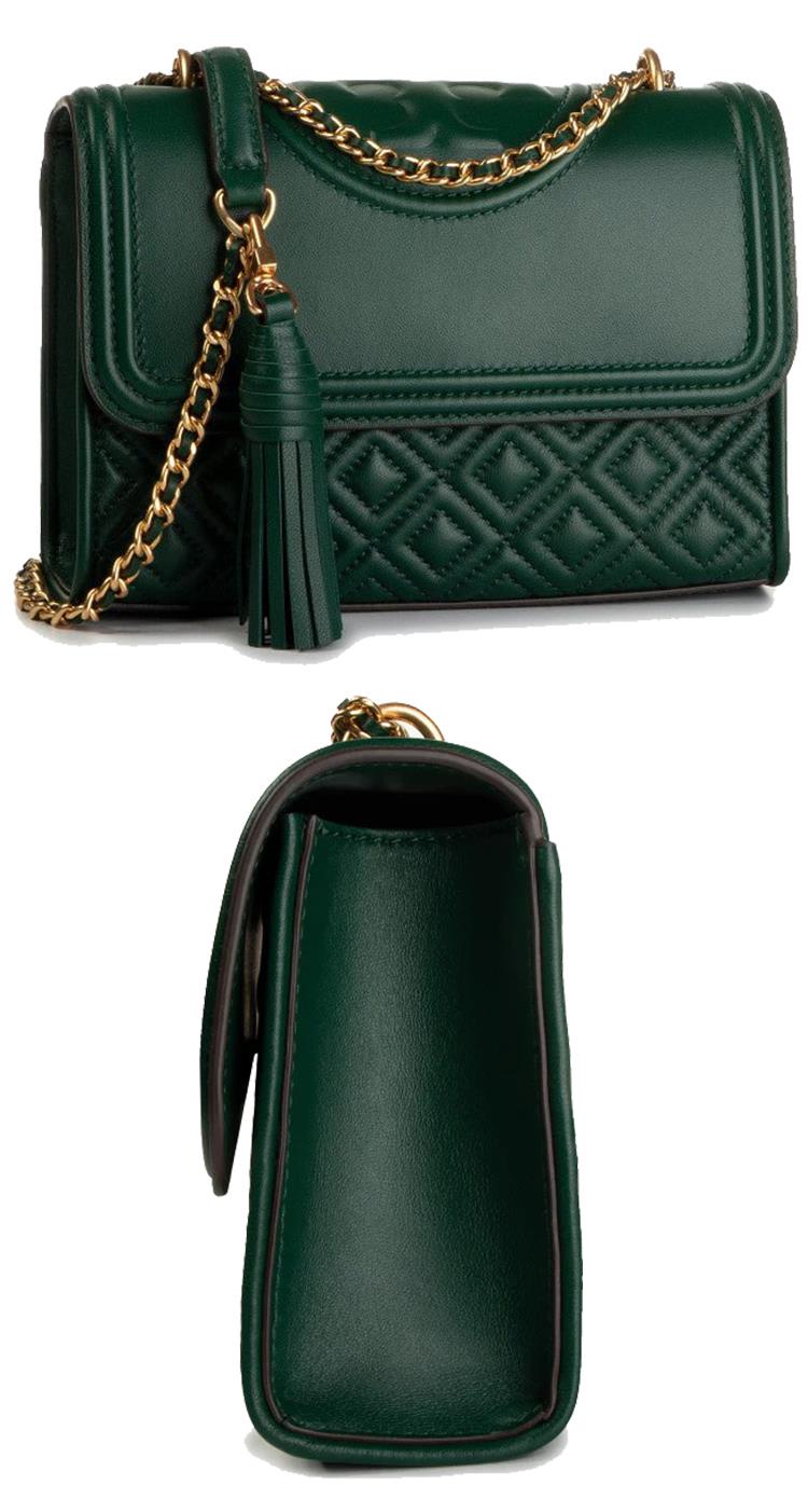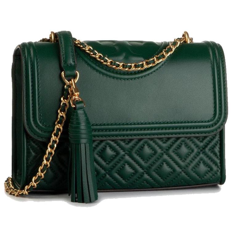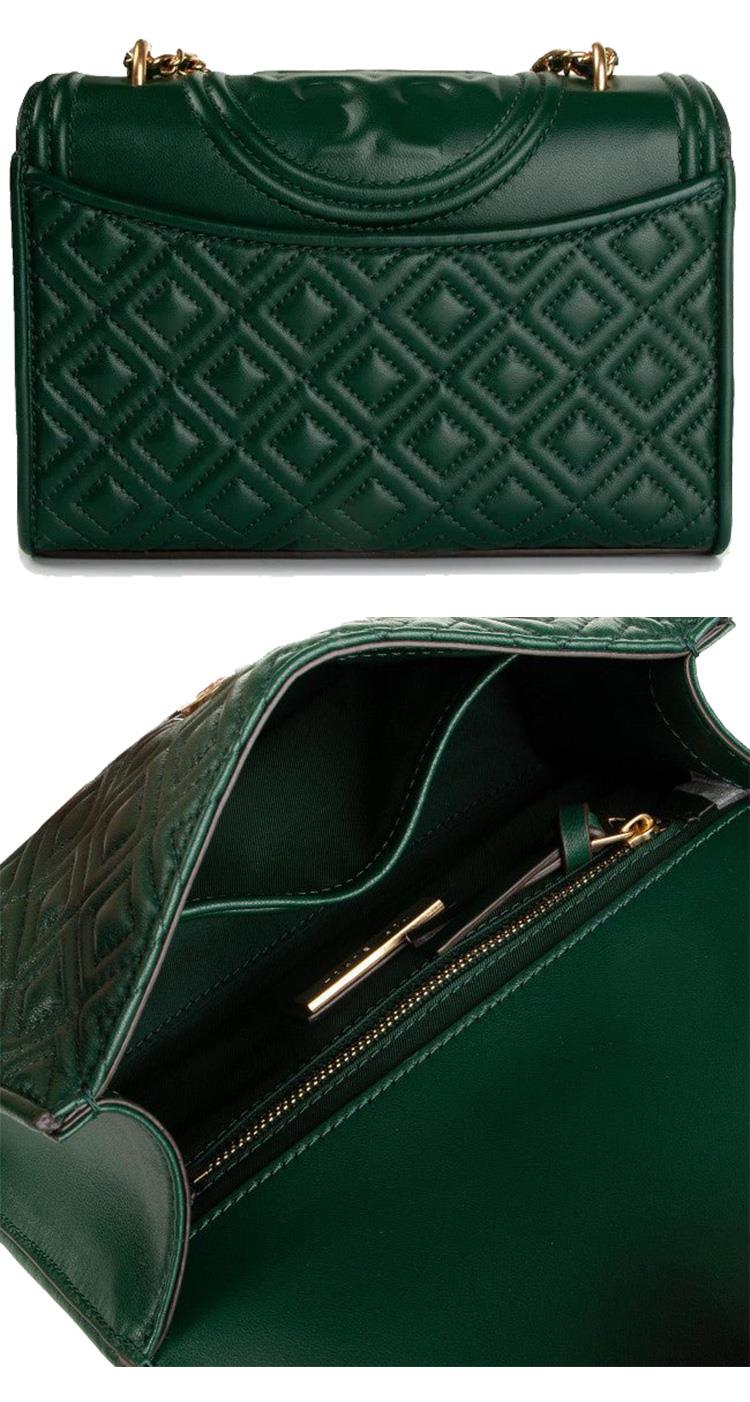 Tory burch 格紋皮革翻蓋斜背包-深綠