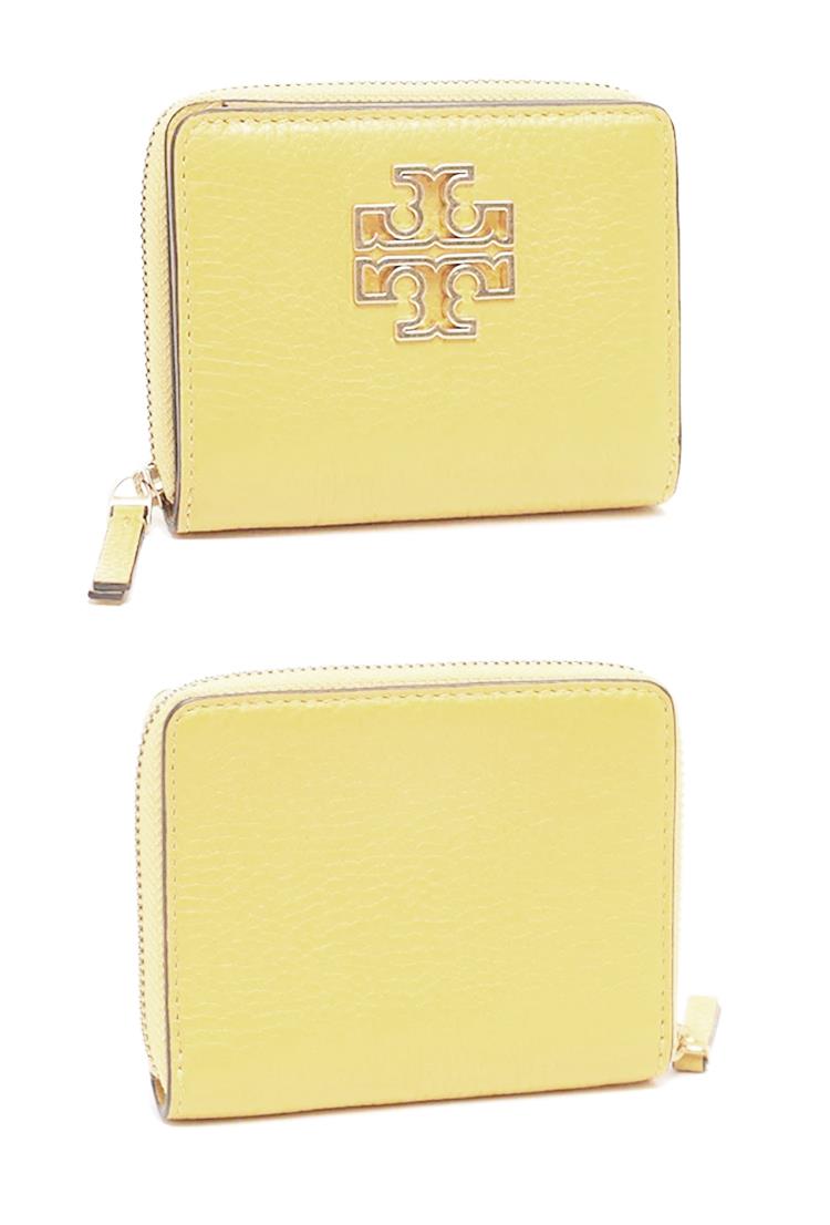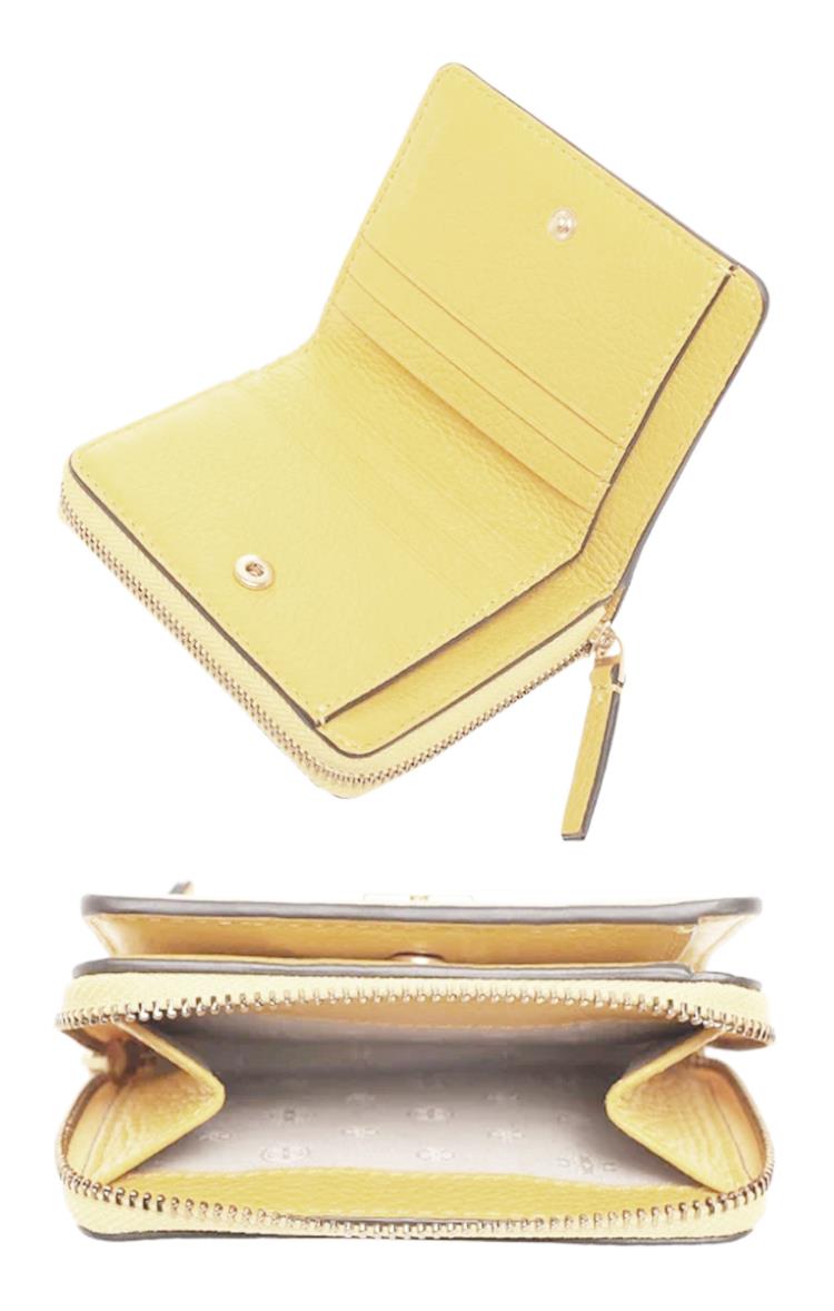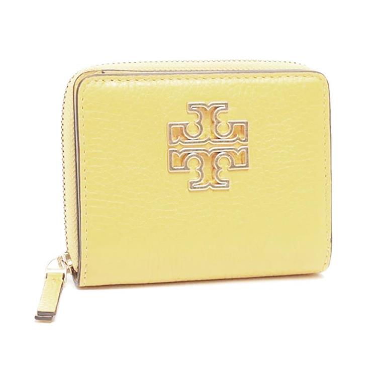 Tory burch 素面荔枝紋皮革短夾-淺黃