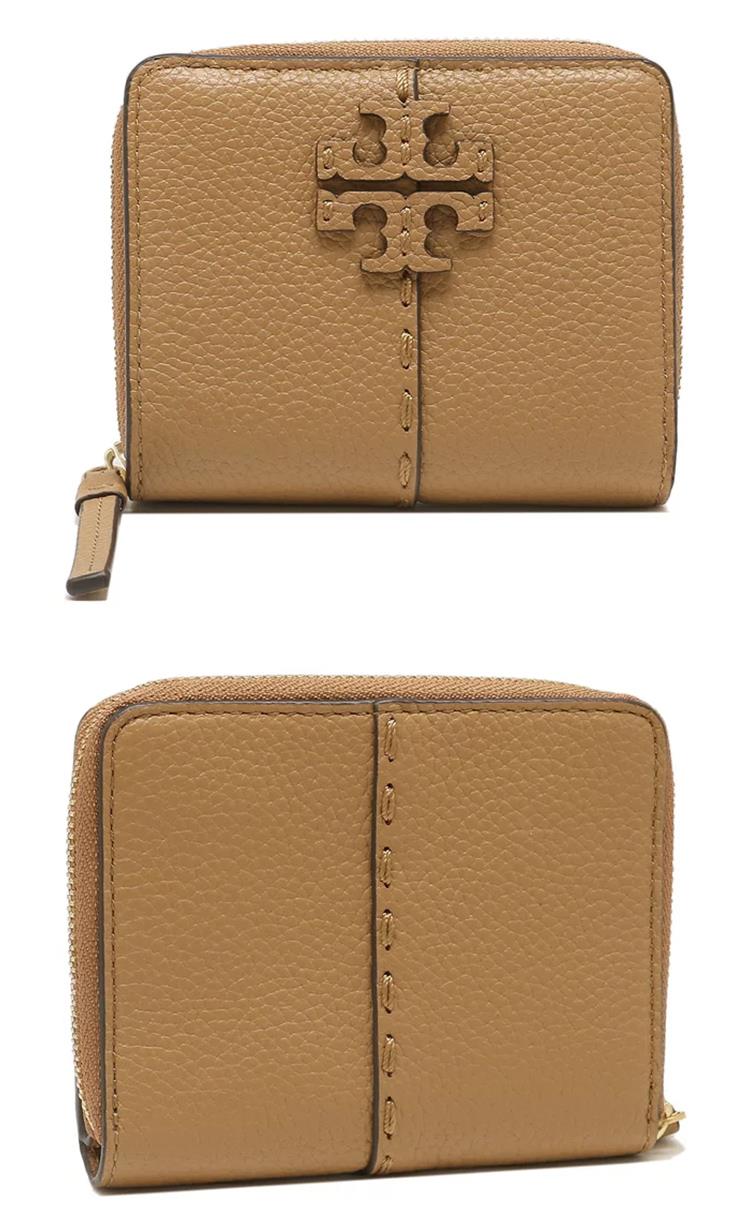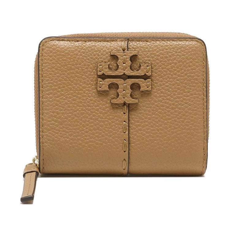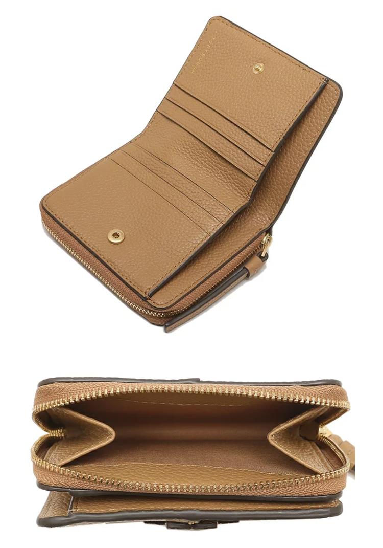 Tory burch 雙T-LOGO素面皮革短夾-淺駝