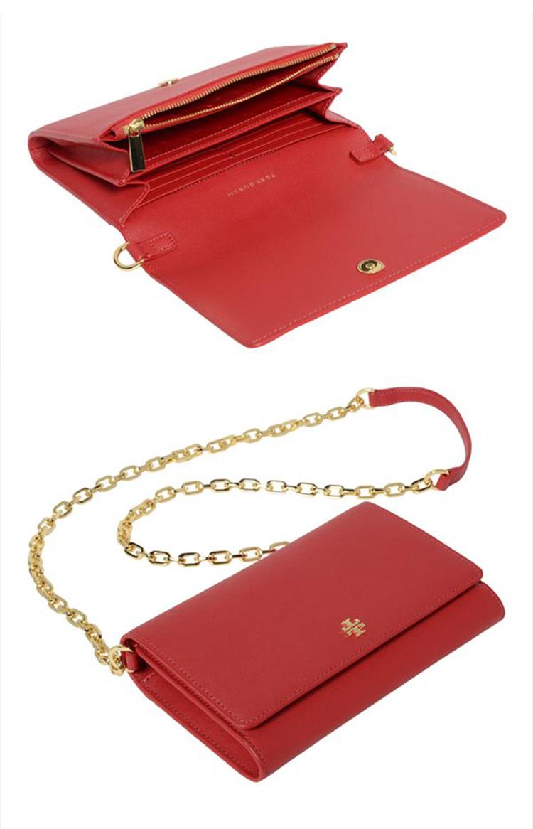TORY BURCH 雙T-LOGO防刮皮革翻蓋斜背包-紅
