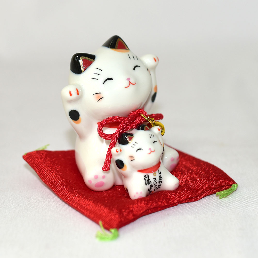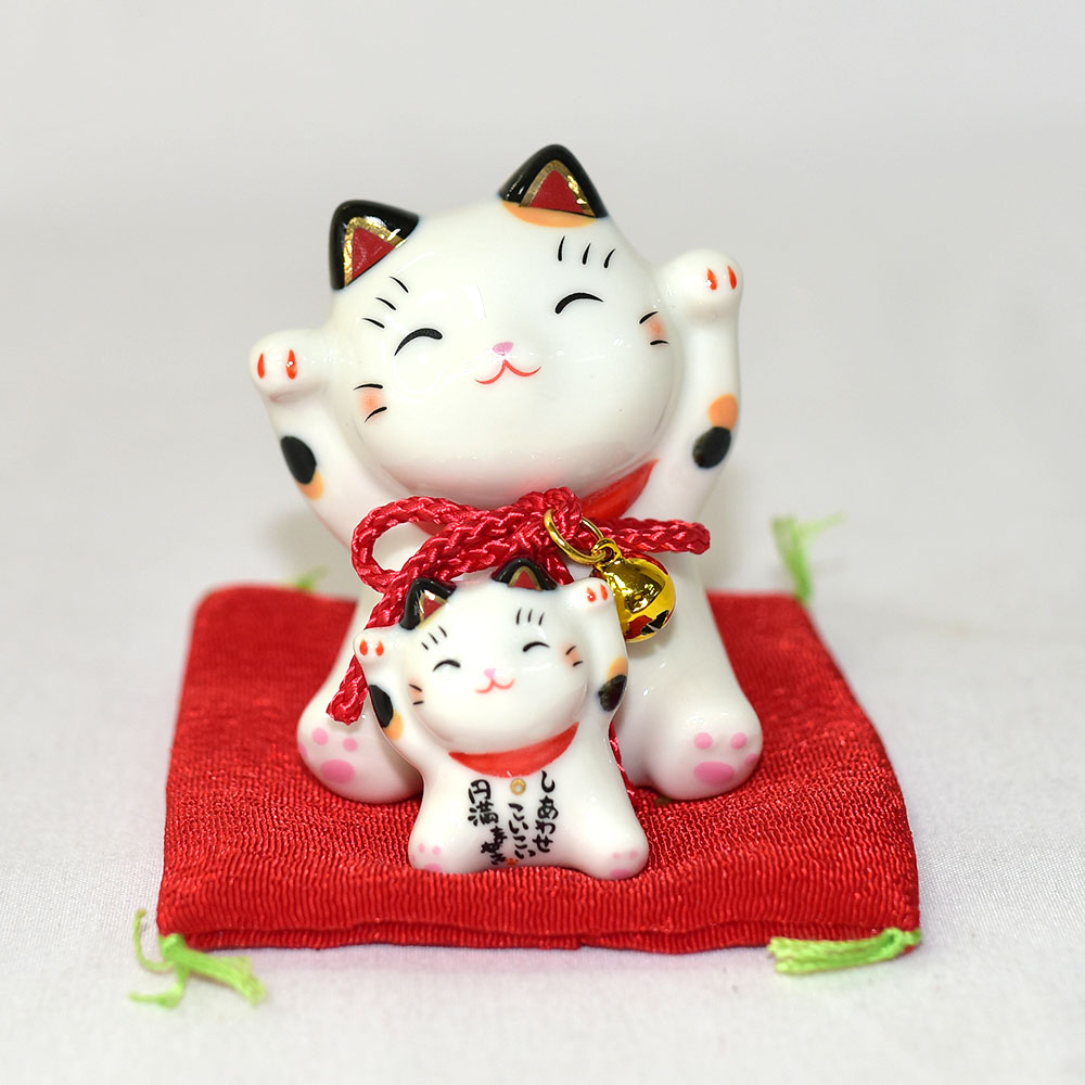 彩繪圓滿 親子 鈴鐺招財貓 磁器吉祥物 日本藥師窯出品 7cm kc316