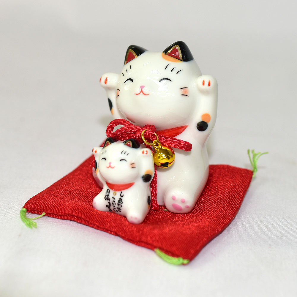 彩繪圓滿 親子 鈴鐺招財貓 磁器吉祥物