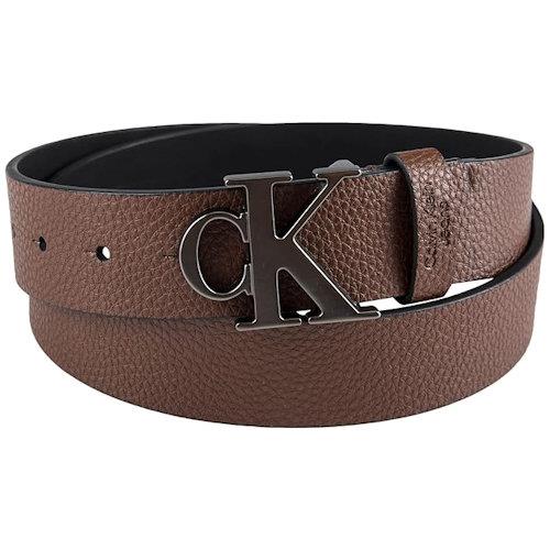 【Calvin Klein】2024男時尚CK經典Logo標扣咖啡色皮帶(預購)