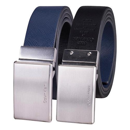 ‧主商品:Calvin Klein 2024男時尚銀色扁牌黑藍色兩用皮帶*1