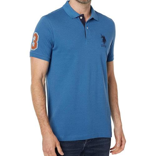 【US Polo】2024男時尚大馬球修身全靖藍色短袖POLO(預購)