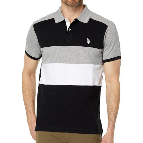 主商品:US Polo 2024男時尚小馬球條紋拼黑灰白色短袖POLO*1