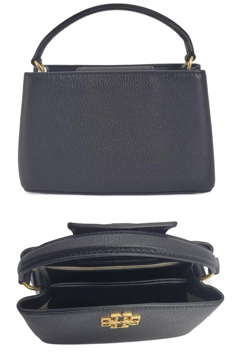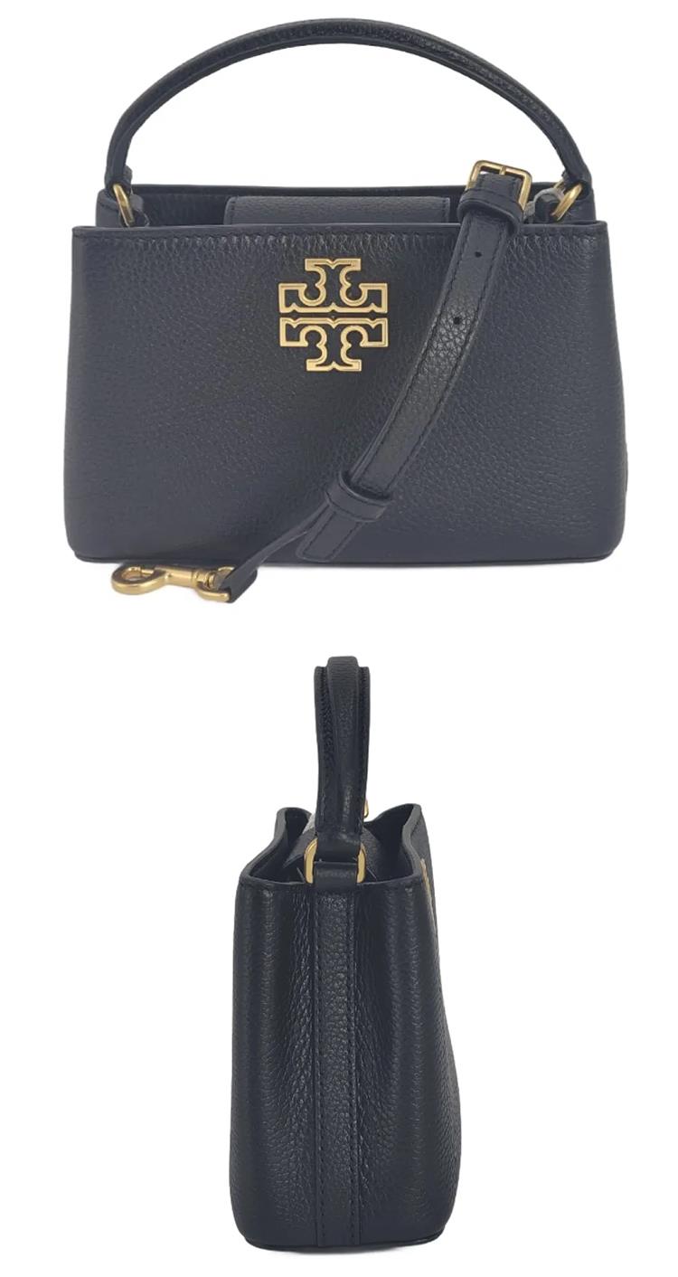 Tory burch 雙T-LOGO素面皮革手提兩用包-黑