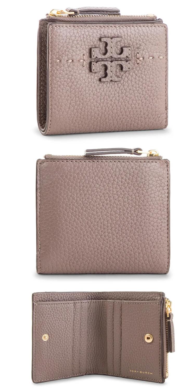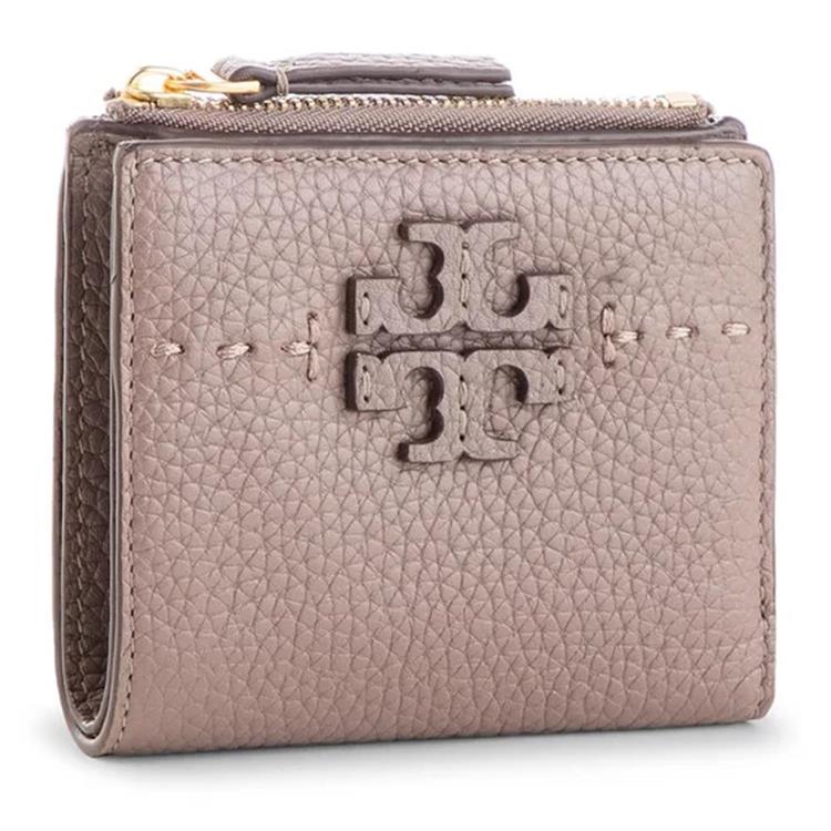 Tory burch 雙T-LOGO素面皮革短夾-沙丘駝