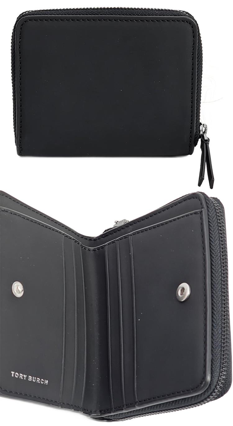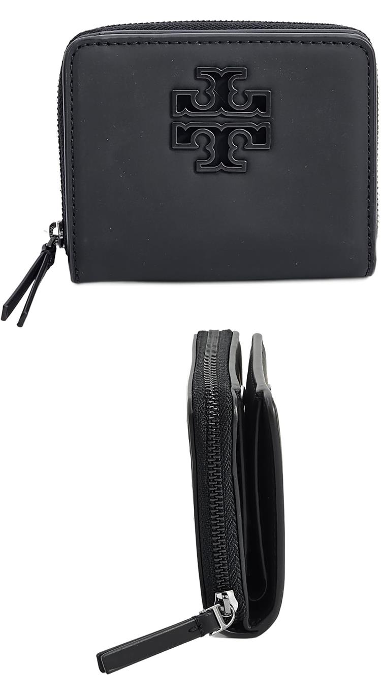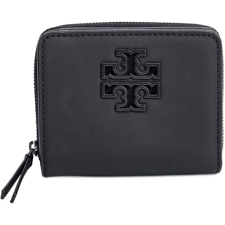 Tory burch 雙T-LOGO素面皮革短夾-霧黑