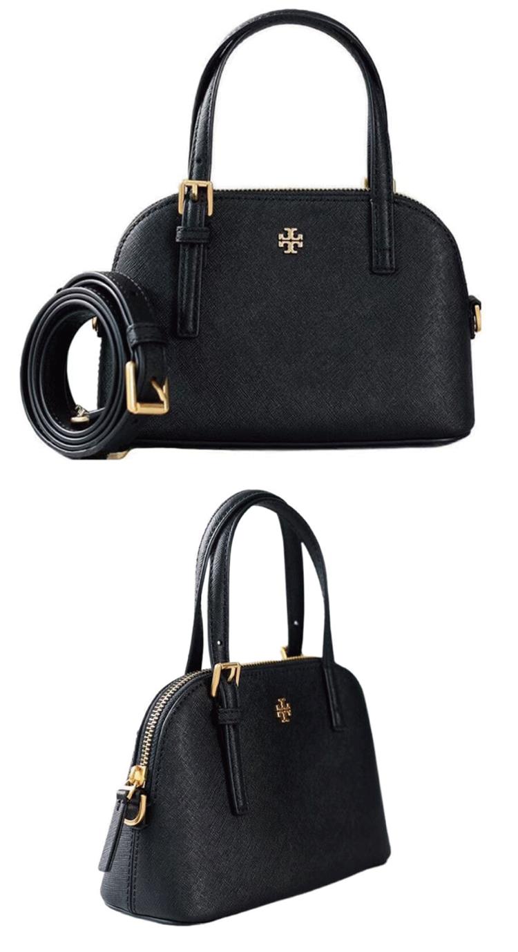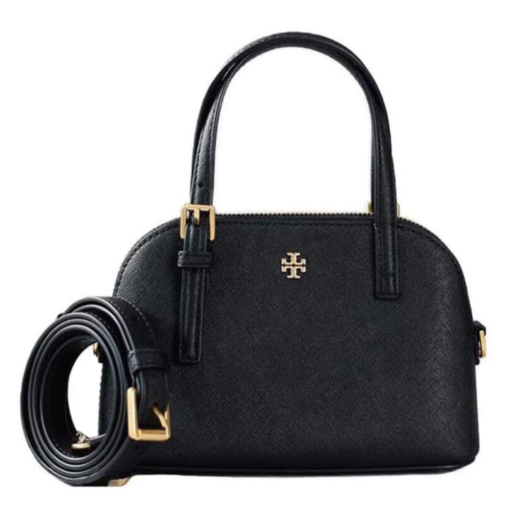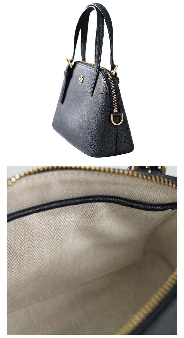 TORY BURCH 素面皮革手提肩背兩用包-黑