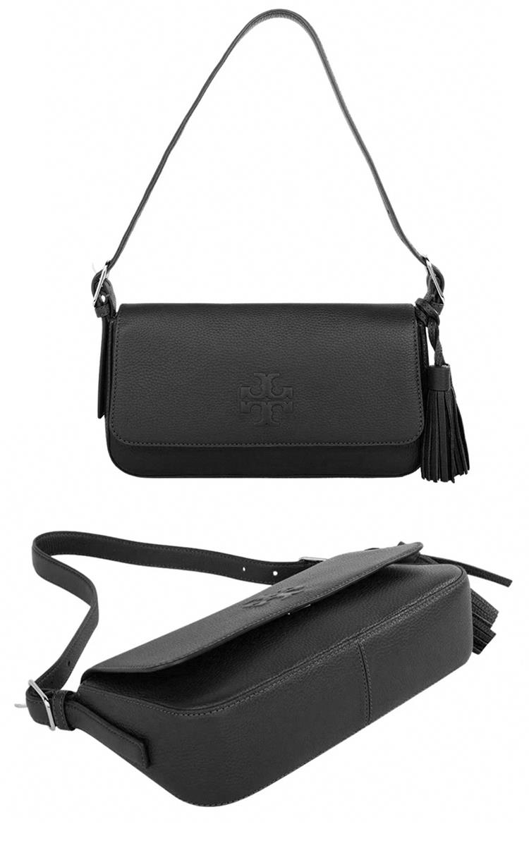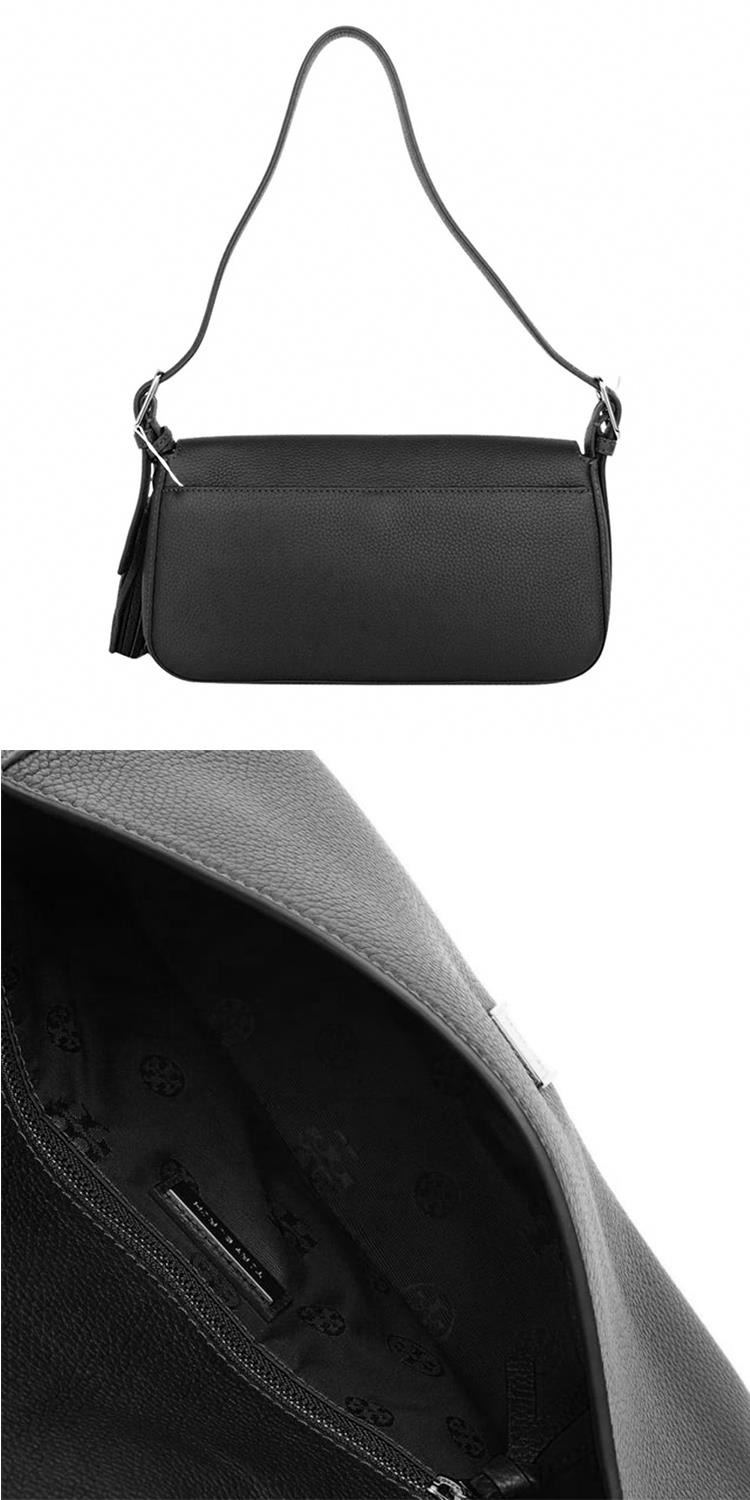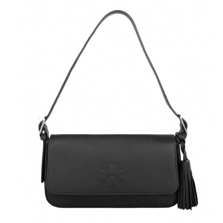 Tory burch 素面翻蓋皮革流蘇斜背包-黑
