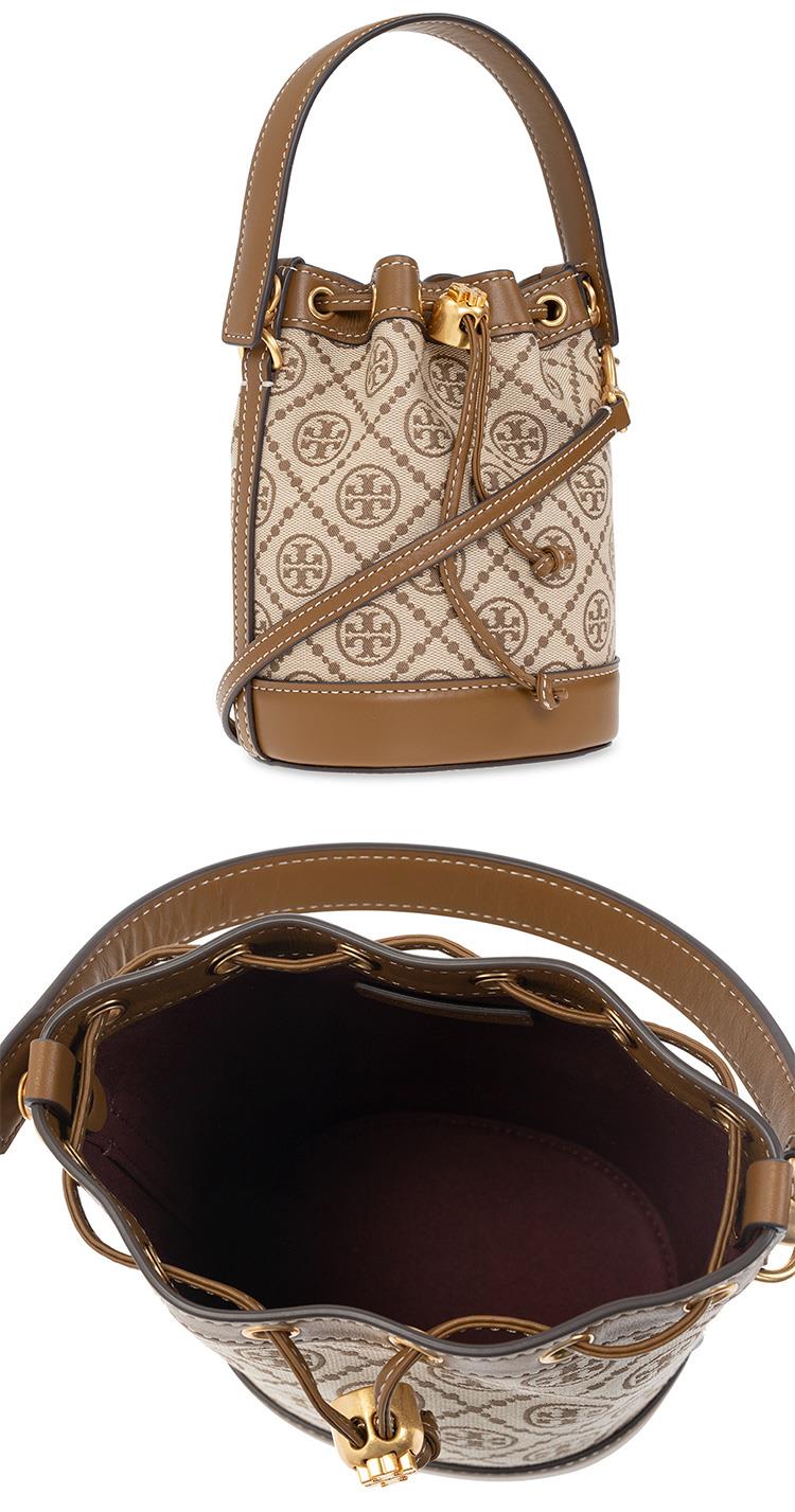 Tory Burch 滿版LOGO緹花拼接皮革迷你水桶包