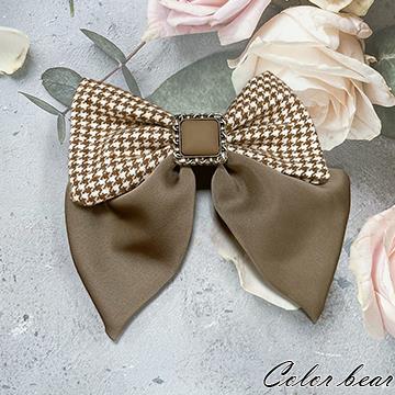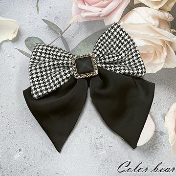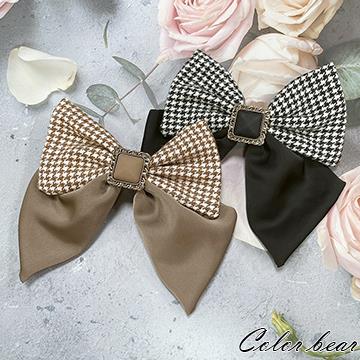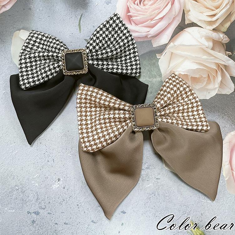 【卡樂熊】拼色蝶結千鳥紋造型髮夾/彈簧夾(兩色可選)