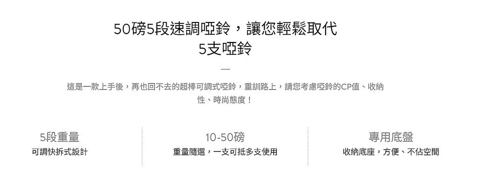 5、10、15、20 LB 五段重量秒速調整,5 in 1 調整啞鈴