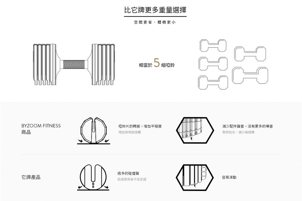 Byzoom Fitness 可調式啞鈴 22.6kg(50LB) 黑白兩色可選