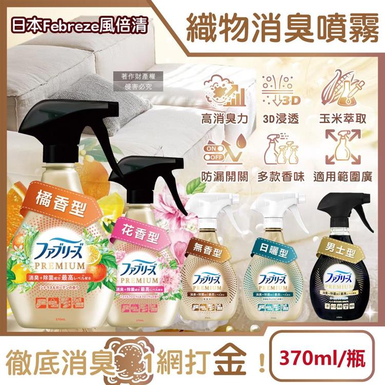 日本Febreze風倍清-高消臭力3D浸透織品除臭噴霧370ml/金瓶(衣物清新/鞋靴除臭劑/防疫清潔劑/除燒烤食物異味/寢具床墊地毯沙發窗簾適用)