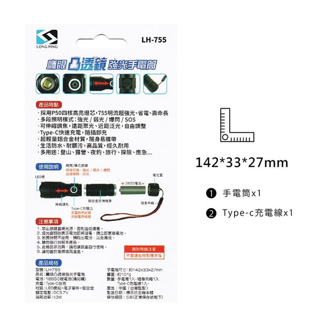 Long Ping 鷹眼凸透鏡強光手電筒 LH-755