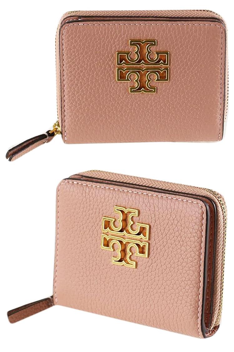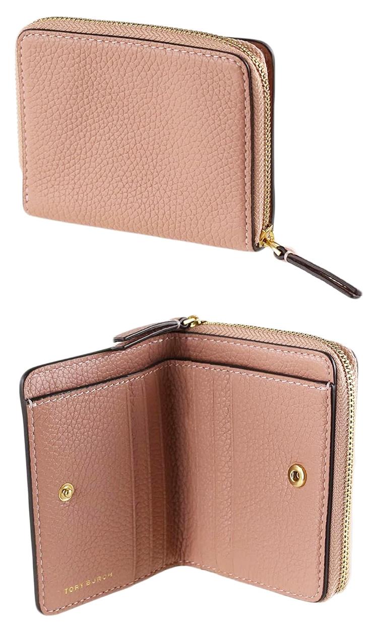 Tory burch 雙T-LOGO素面扣式皮革短夾-粉色