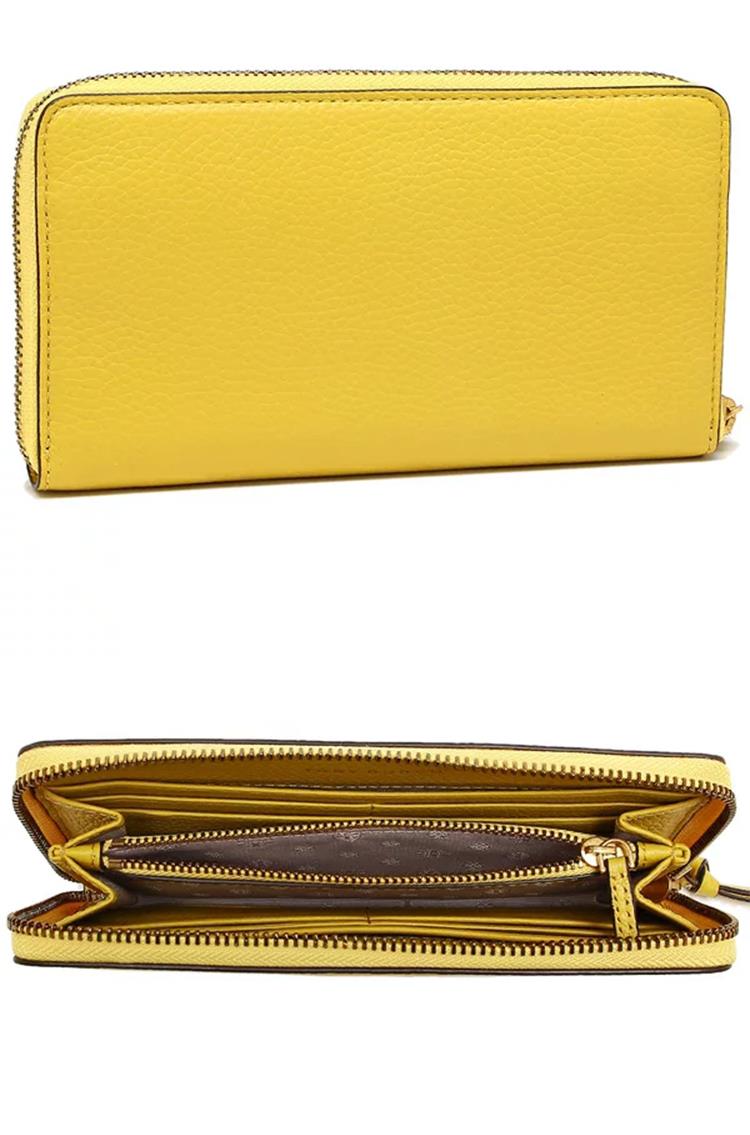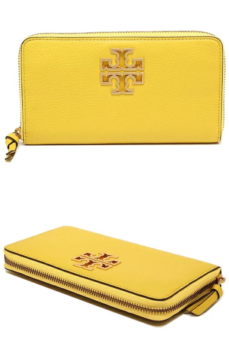 Tory burch 雙T-LOGO素面皮革長夾-黃色