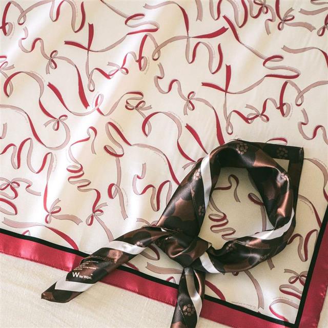日本Wpc. W116-422 粉緞織情 緞面絲巾 綁包包/冷氣房擋風兩用
