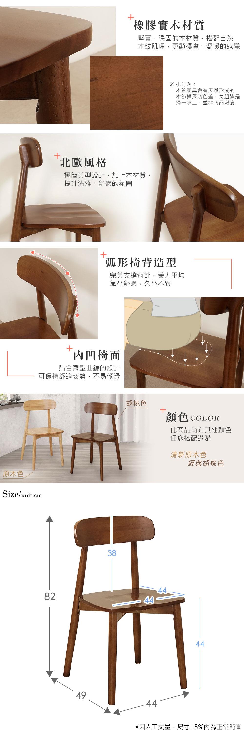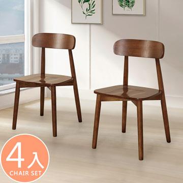 YoStyle 諾恩北歐風實木餐椅-4入組(胡桃色)