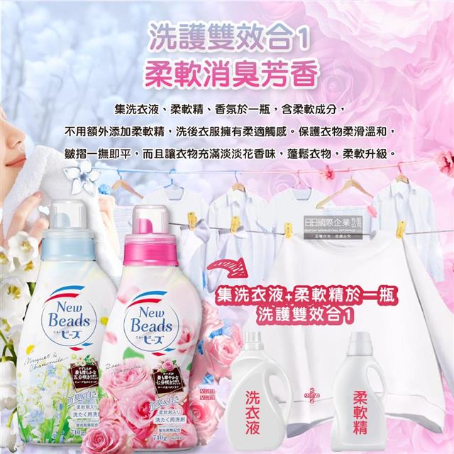 ●品名:New Beads植萃消臭香氛濃縮柔軟洗衣精