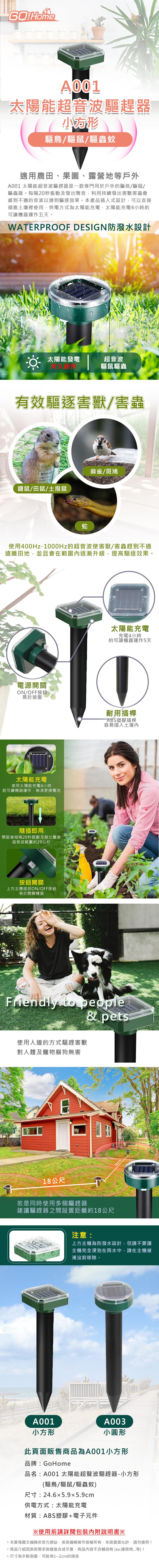 GoHome A001 太陽能超音波驅趕器-小方形(驅鳥/驅鼠/驅蟲蚊)