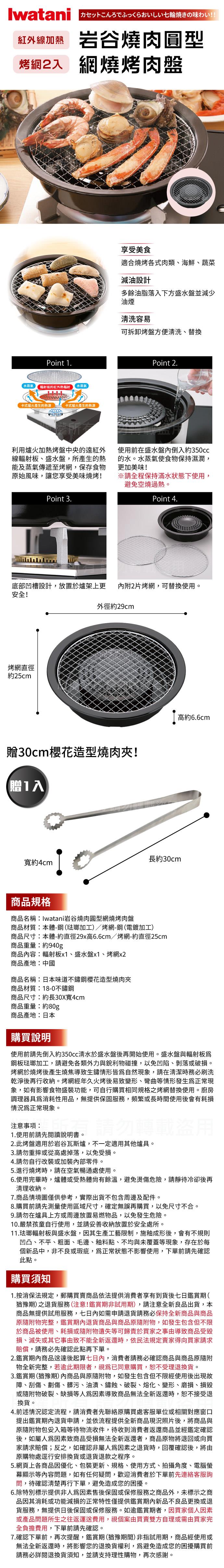 【Iwatani岩谷】圓型網燒烤肉盤-29cm-搭贈不銹鋼燒肉夾(CB-A-AMP+KJ-0321)