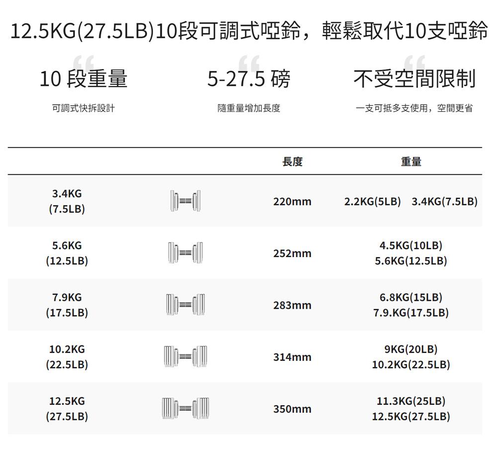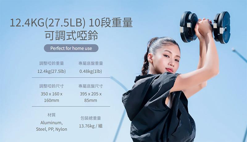 12.4KG 10段速調啞鈴,讓您輕鬆取代10支啞鈴