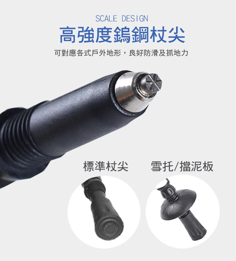 耐磨、強韌、耐腐蝕,特殊頂級避震系統設計,高強度鎢鈷鈦合金杖尖