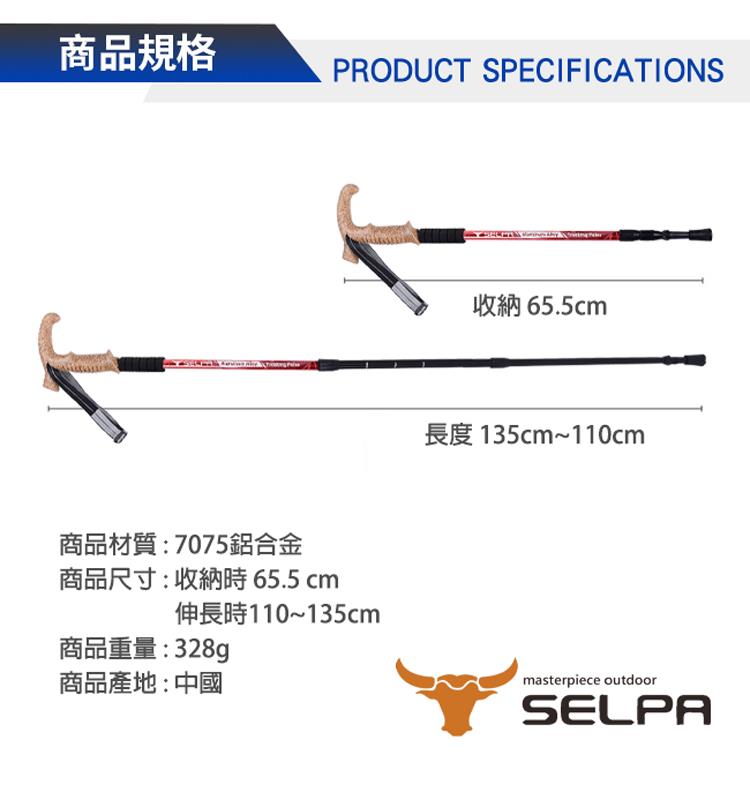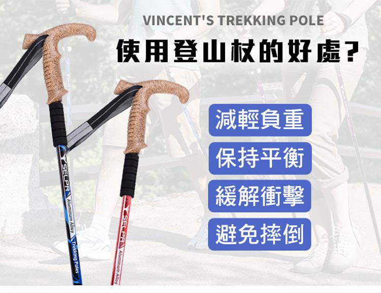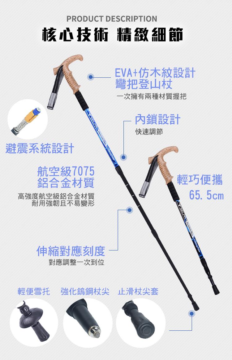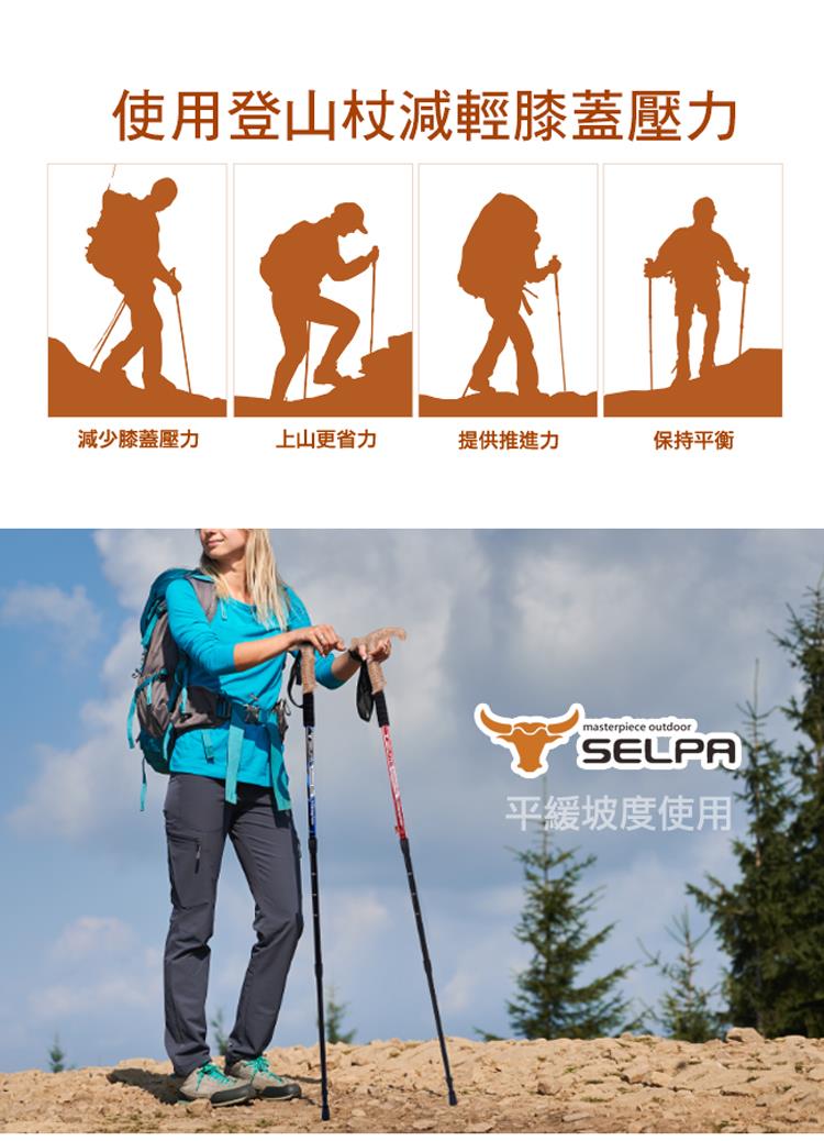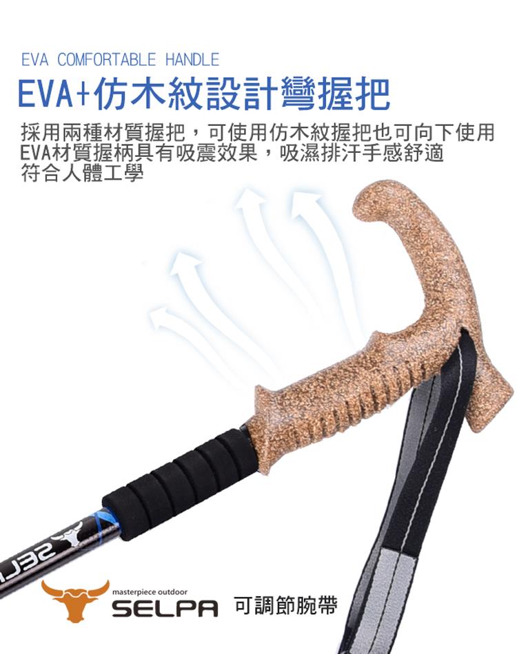 【韓國SELPA】御駿7075鋁合金避震彎把登山杖(三色任選)