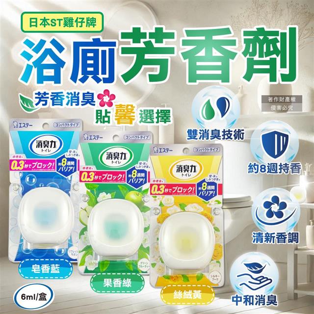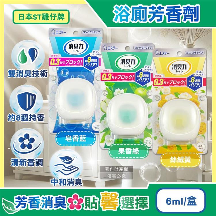 日本ST雞仔牌-消臭力持香約8週浴廁瞬效淨味除臭芳香劑6ml/盒(放置型脫臭擴香/衛浴香氛盒/浴室空氣清新/如廁瞬效去味/洗手間除尿騷氨臭)