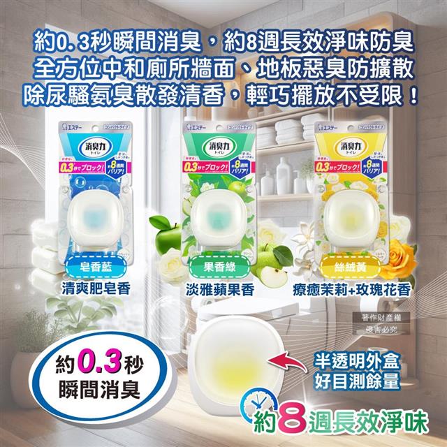 約0.3秒瞬間隔絕消臭,約8週長效淨味持續防臭,打造安心如廁空間!商品介紹