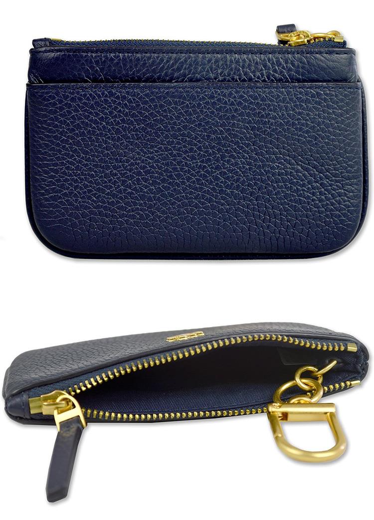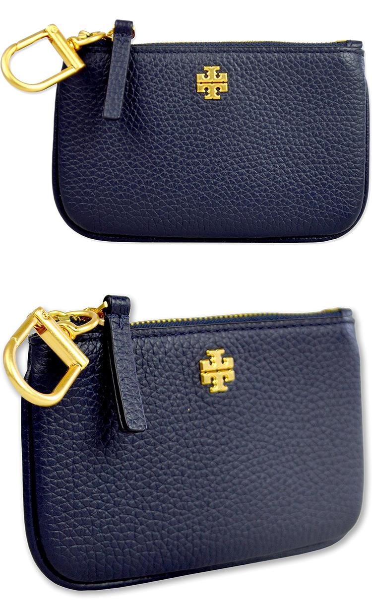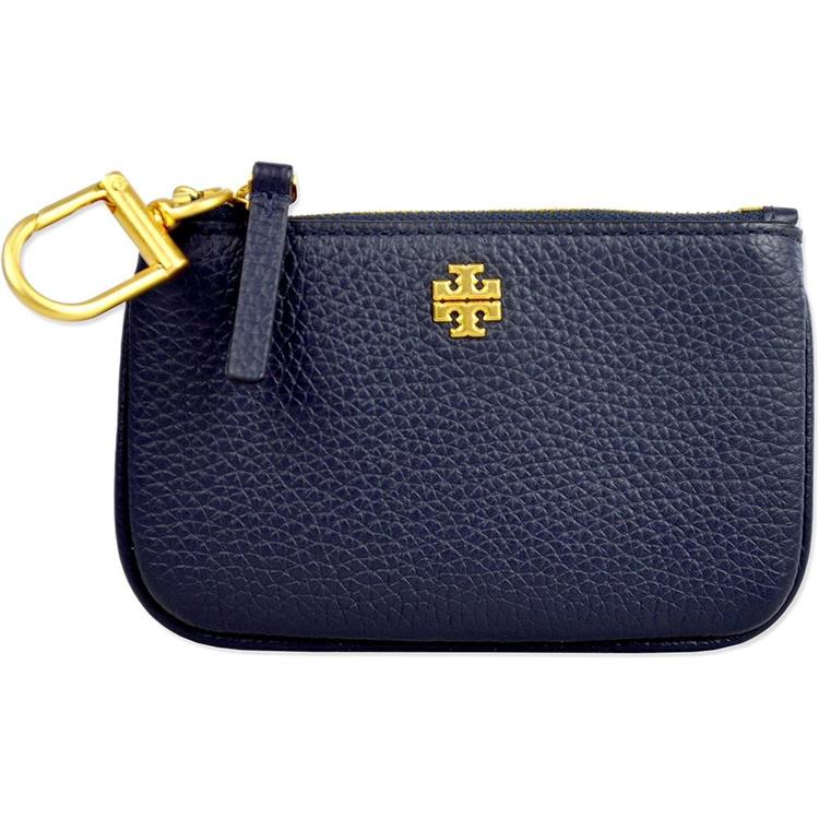 TORY BURCH 素面皮革鑰匙零錢包-深藍