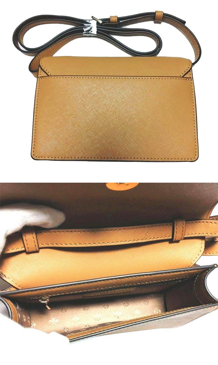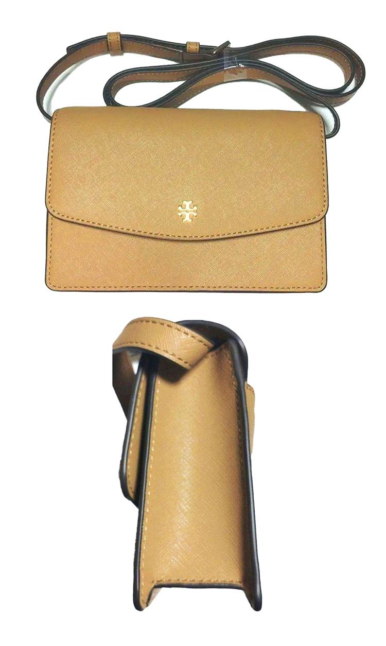TORY BURCH 雙T-LOGO皮革翻蓋斜背包-駝