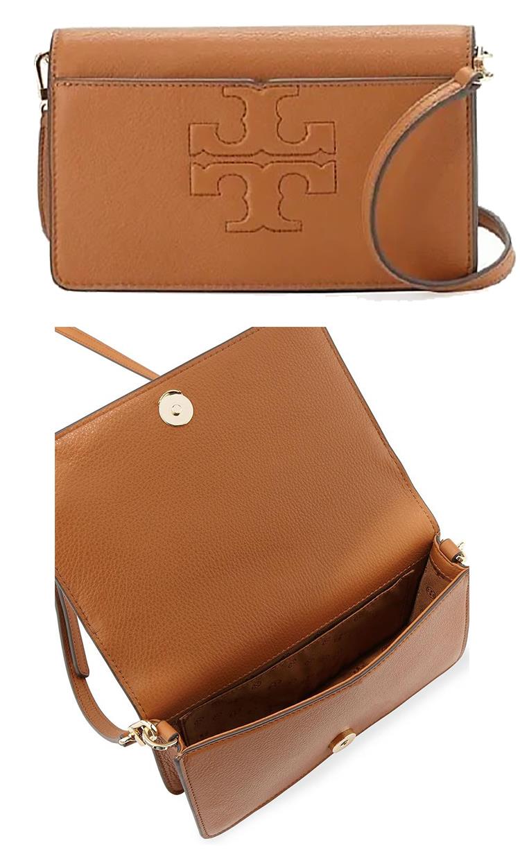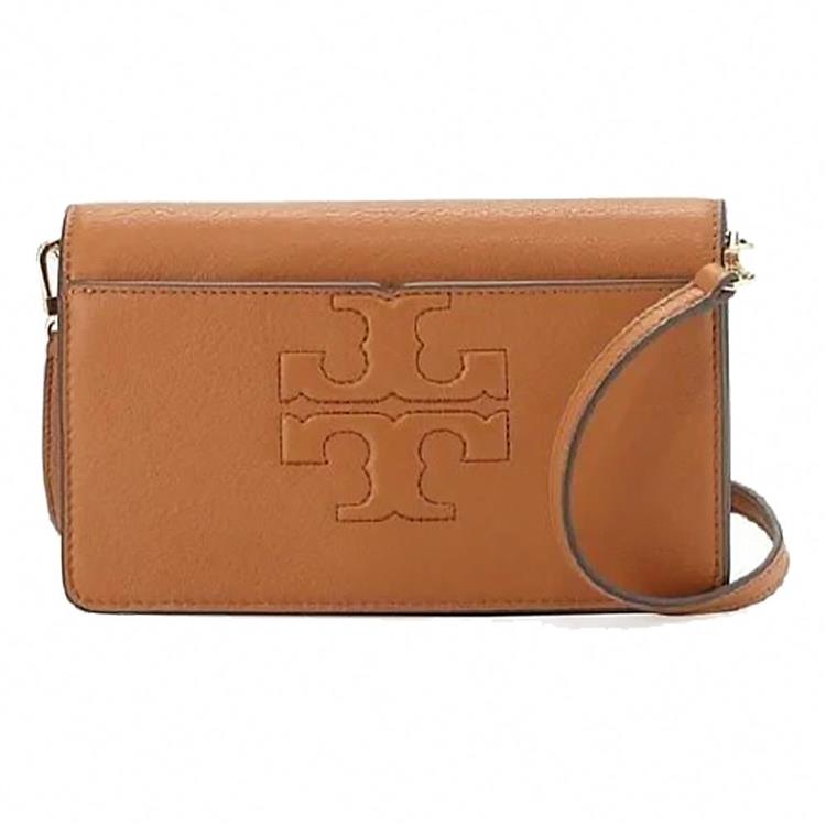 TORY BURCH 荔枝紋皮革斜背包-駝