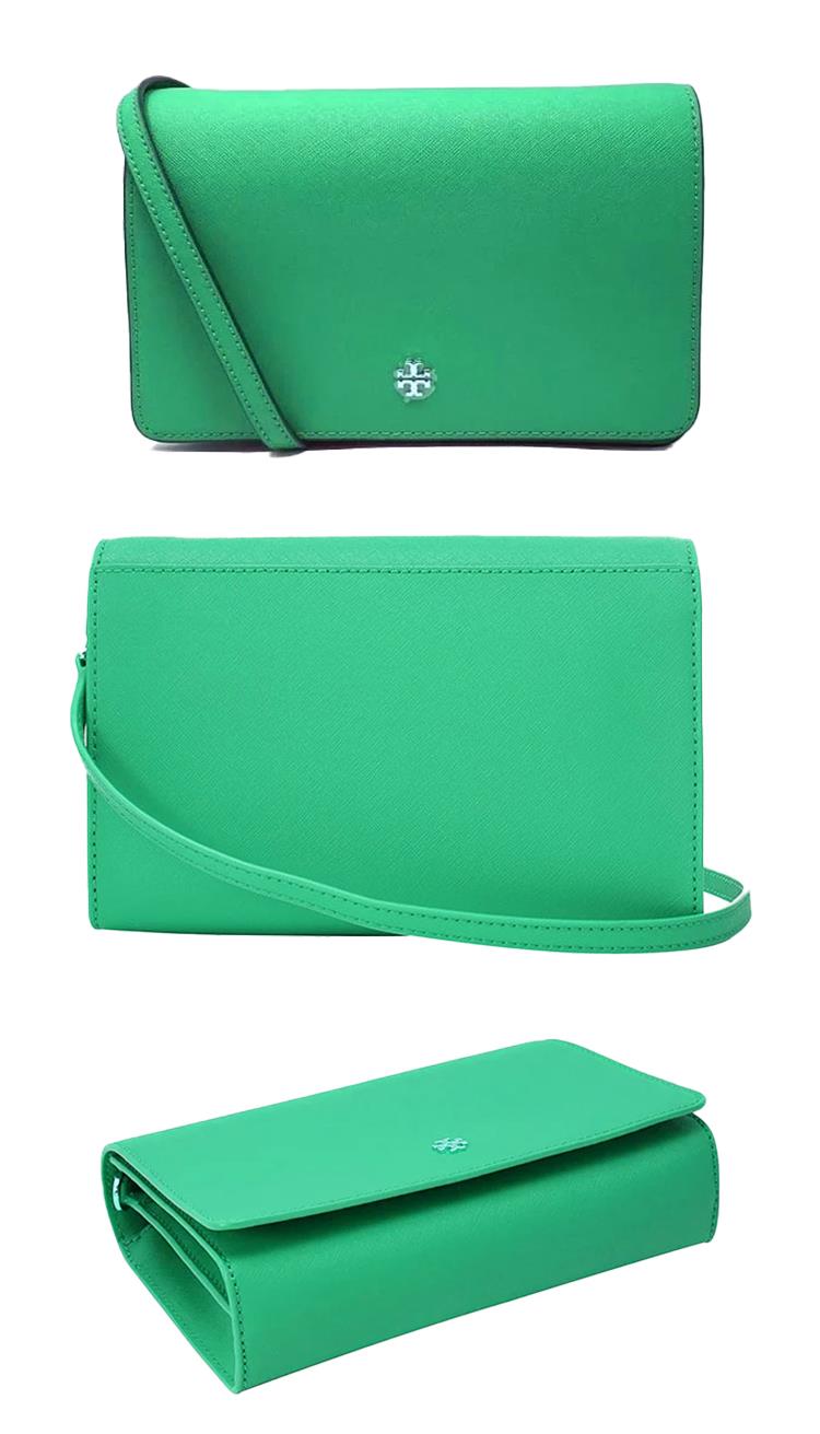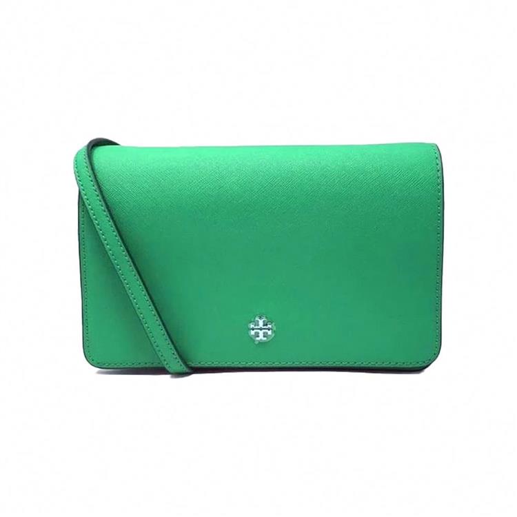 TORY BURCH 雙TLOGO皮革翻蓋斜背包-綠