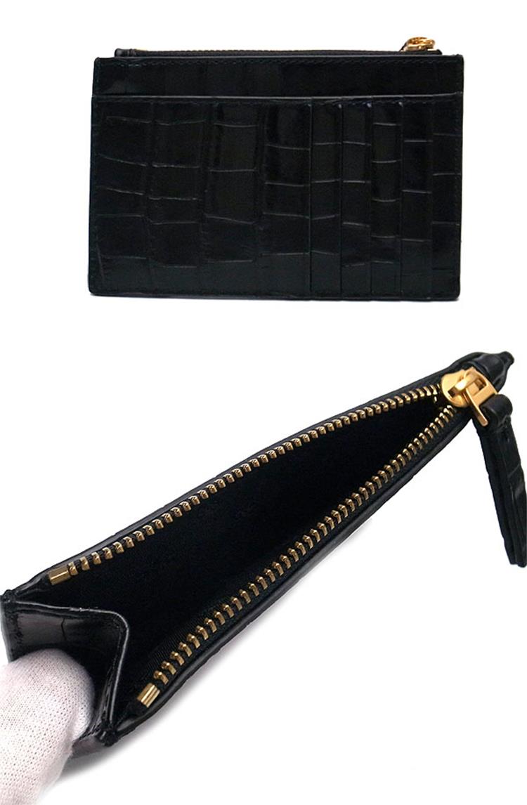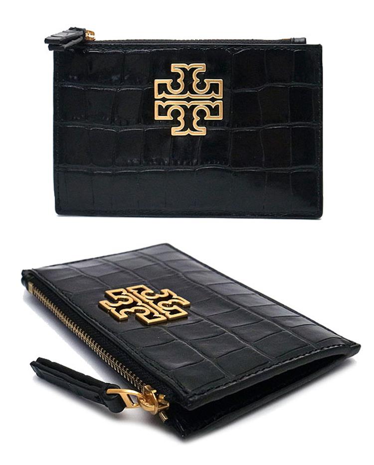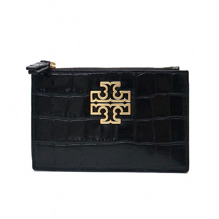 Tory burch 鱷魚紋皮革卡片零錢包-黑色
