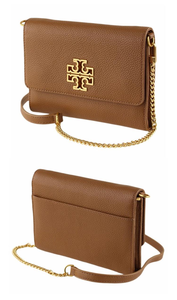 TORY BURCH 雙T-LOGO翻蓋皮革斜背包-駝