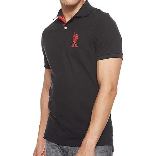 【US POLO】2024男時尚全棉大馬球黑色合身短袖POLO